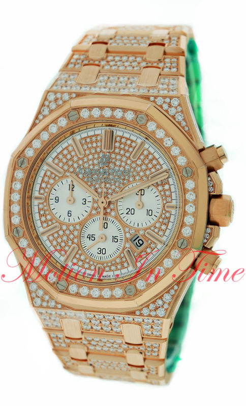 124995.00 Price:124995.00Motion in Time, Inc. Super Exclusive & Extremely Rare Audemars Piguet 41mm Royal Oak Chronograph 18k Rose Gold Full Diamond Pave Bracelet Diamond Dial & Diamond Pave Bezel All Factory Unworn - Complete With Box & Papers Reference No. 26322OR.ZZ.1222OR.01 RETAIL $153,200 BUY IT NOW FOR $124,995 OR MAKE AN OFFER!! Watch Description Exotic - Rare - And Absolutely Breathtaking! Super Exclusive Royal Oak from Audemars Piguet. A powerful & striking watch - will definitely draw attention & makes for a great conversation piece. This watch features: Brushed finished 18kt rose gold case & bracelet with polished bevel edges. Silver dial with the Grande Tapestry design pattern. Rose gold rimmed silvered sub-dials with a very fine concentric circular engraved pattern. Applied polished rose gold index hour markers with luminescent fill. Fine printed seconds & fraction of a seconds track.Polished rose gold baton hands with luminescent fill. Chronograph function: Column-Wheel chronograph movement.Large central seconds counter hand.30 minute sub-dial counter located at the 3 o'clock position.12 hour sub-dial counter located at the 9 o'clock position. Date window located between the 4 & 5 o'clock position.Continuous running small seconds sub-dial located at the 6 o'clock position.AP Caliber 2385 beats at 21,600 vph, contains 37 Jewels & has an approximate power reserve of 40 hours.Water Resistant 50mSapphire CrystalCase Thickness Approx 10.8mm18k Rose Gold set with 736 brilliant-cut diamonds, ~7.13 carats (case middle, bezel, bracelet). 230 diamonds 8/8-cut, ~0.71 carats (dial). Rose Gold Bezel, set with 40 diamants taille brillant; ~Approx 0.71 carat (lunette) PLEASE READ OUR ACCEPTED PAYMENT OPTIONS BELOW PRIOR TO BIDDING · 100% GUARANTEED AUTHENTIC WITH A 2 YEAR WARRANTY! PLEASE ALSO CHECK OUR OTHER ITEMS... E-Mail or Call ~ HAPPY BIDDING. Motion in Time is not affiliated with Audemars Piguet & is not an official Audemars Piguet Dealer. Motion in Time, Inc. is not affiliated with Audemars Piguet, or any other watch company, and is not an official Audemars Piguet Jeweler. Audemars Piguet warranty no longer attaches. Motion in Time, Inc. is the sole warrantor of these watches. Motion in Time, Inc. is not affiliated with any watch maker. All watches and watch items sold are preowned. We do not ship to Indonesia or Malaysia. CHECK MY OTHER AUCTIONS FOR MORE GREAT DEALS! (SIGN UP FOR OUR WEEKLY EBAY DEALS) -------------------------------------------------------------------------- Why Buy From Us? BID WITH CONFIDENCE! * Motion in Time is a full-service watch and jewelry store located at 56 West 47 Street, New York, NY 10036 (Between 5th & 6th Avenues). * Be confident when buying from us ~ We are wholesalers of the world’s finest preowned wristwatches and sell brands ranging from Patek Philippe to Movado. * We are members of the International Watch & Jewelry Guild (IWJG) * We give an extended two-year warranty on all watches purchased. * We are located in the Heart of the New York Diamond District in Manhattan. Our main goal is a simple one: "Treat our clients as we would like to be treated ourselves" ---------------------------------------------------------------------------------- Payment Methods: Credit Cards AND PayPal: We accept Visa/MasterCard, American Express All International Buyers must inquire with us prior to bidding. If you have any questions or concerns please feel free to give us a call or eBay message us, we will be more than happy to assist you. (If paying with Credit Card, you must be within the United States and your billing and ship to address must be the same) - Photo ID is required to process payment PayPal: PayPal users must be Verified and Confirmed. Regarding PayPal Payments: We will only ship to the PayPal confirmed address. It is a requirement of PayPal in order to meet their protection policy. By adhering to their safety regulations, we are able to conduct safer business and as a result sell our items at lower prices. All items shipped within New York State will incur an 8.875% sales tax. ---------------------------------------------------------------------------------- Import duties, taxes, and charges are NOT INCLUDED in the item price or shipping charges. These charges are the buyer's responsibility. Please check with your country's customs office to determine what these additional costs will be prior to bidding / buying. These charges are normally collected by the delivering freight (shipping) company or when you pick the item up; do not confuse them for additional shipping charges. We do not mark merchandise values below value or mark items as "gifts". U.S. and International government regulations prohibit such behavior. We reserve the right to use the most secure shipping method and/or company to ship your purchase. Calculated shipping and insurance is an estimate only and may not reflect the actual cost of shipping and insurance. Once we have your shipping address, we can give you an exact cost for shipping and insurance. If you would like this information prior to bidding, please contact us. ---------------------------------------------------------------------------------- Return Policy All sales are final. Please check to make sure that the watch you are purchasing is the make and model which you are looking for. We are here to assist you in your buying process! Under special circumstances and we agree to accept the return of the item purchased, there will be a 10% restocking fee. The customer is responsible for all freight charges for items returned back to us. We recommend a carrier with a tracking number to verify package delivery. Insurance is highly recommended for the return package. All returns not accepted will be mailed back to the customer, at the customer's expense, via fully insured overnight shipping. The shipping charges both ways is covered by the purchaser. -------------------------------------------------------------------------