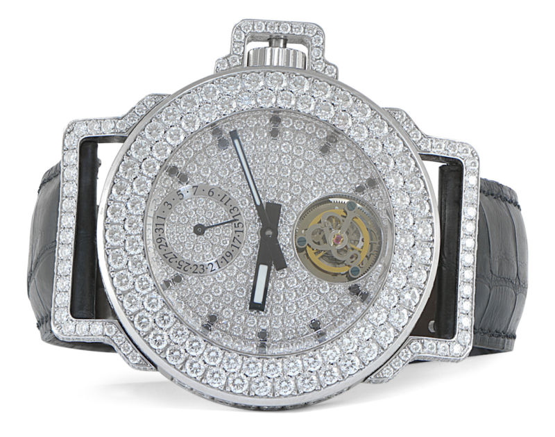 165000.00 Price:165000.00We Purchase Pre-Owned Watches and Jewelry We Accept Trade-Ins Have a question? Call or Text 215-922-1501 Menu Watches Rings Earrings Bracelets Necklaces Misc Product Description: This magnificent Jacob & Co Tourbillion watch is 100% original and in excellent condition as you can see by the photos. The platinum case features pave diamonds all over, with an 18k diamond bezel. There are 2 black diamonds that signify each hour marker. The buckle features diamonds on it as well. The case diameter is 47.5mm and the thickness is 15mm. The movement is an in-house Jacob & Co. Calibre JC1000 that has an impressive 120 hour power reserve with calendar date function. This watch is limited to 18 pieces manufactured. Please contact us if you want any additional info on this watch. Additional Information: Condition: Pre-Owned Brand Jacob & Co. Series Tour P Model Platinum Diamond Tourbillion Movement Manual Case Diameter (mm) 47.5mm Caseback Exhibition Dial Pave Diamond Crystal Sapphire Band Leather Functions Hours Minutes Date Box No Original Box Papers No Original Papers Please text message or call us at 215-922-1501 with any questions regarding this product. All pictures are taken of the actual item that is for sale, we never use stock photos! We are retail jewelry store located in Philadelphia, PA and have been in business since 1991. All of our products are guaranteed authentic and covered by our 12-Month TNS Diamonds Warranty. Shipping -Items are shipped within 1-2 business days after payment is received. -All U.S. shipments are sent via USPS Priority Mail Express Overnight. -All international shipments are sent via Fedex or UPS. -Everything that leaves TNS Diamonds is fully insured against loss, theft, and damage during its transit. -Note: Some countries charge import fees. Any additional import/custom fees are to be paid by the purchaser. Contact your local customs for tax information in your country. Return If you arenot satisfied with your purchase, we proudly offer a 14-day return policy. We will refund 100% of the original purchase price. A full refund is only eligible under the following conditions: -The merchandise must be in the exact condition it was received in. It must have never been worn, damaged, altered or sized in any way. -All shipping costs are responsibility of the customer. -Final decisions are at the discretion of TNS Diamonds. Appraisal Upon request, all jewelry will come with an appraisal suitable for insurance purposes. The appraisal will contain an accurate and complete description of the item. Warranty In the unlikely event that something is mechanically wrong with your watch within 12 months of the date of purchase, the watch can be sent back to us for repair. The warranty is voided by abusive wear, and is at the discretion of TNS Diamonds. In the unlikely event that part of your jewelry is damaged within 12 months of the date of purchase, you can send it back to us and our qualified jewelers will repair the piece and get it back to you as quickly as possible. Our Services Watch Repair: TNS Diamonds has been repairing Swiss watches for over 30 years, you can always expect high quality and reliable service. Ring Resizing: Most rings our rings can be resized. Resizing is free with the purchase of any ring. Custom Diamond Bezels: TNS Diamonds can create or install any diamond bezel for any watch! We’ve been custom making and installing bezels on watches for over 30 years. Trading/Selling: TNS Diamonds is the premier place to sell your watches and jewelry. You can always expect a fair and accurate quote. To take advantage of any of our services, contact us at 215-22-1501. About Us About TNS Diamonds TNS Diamonds is located on Philadelphia's Jewelers Row. We are a family run business that can take the time to personally assist each customer. We carry a large variety of top name Swiss Brand Watches, as well as a huge selection of Fine Jewelry. We have onsite jewelers and watch technicians that can assist customers very quickly. TNS has an large selection of GIA Certified diamonds for engagement rings. Contact us at 215-922-1501 with any questions! Specialty Items Include Diamond Watch Accessories Exotic Engagement & Wedding Rings Diamond Bezels Complex Jewlery Making Diamond Dials Swiss Watch Repair Have questions? Let our experts help you! Call or Text 215-922-1501 with any questions regarding this product. We are retail jewelry store located in Philadelphia, PA and have been in business since 1991. All of our products are guaranteed authentic and covered by our 12-Month TNS Diamonds Warranty. © 2016 TNS Diamonds. All Rights Reserved. 136 S. 8th Street Unit A | Philadelphia, PA 19107