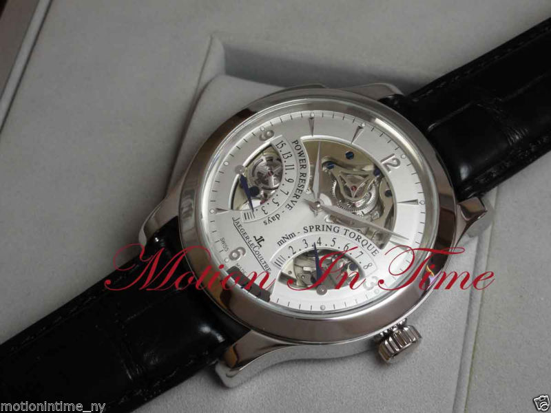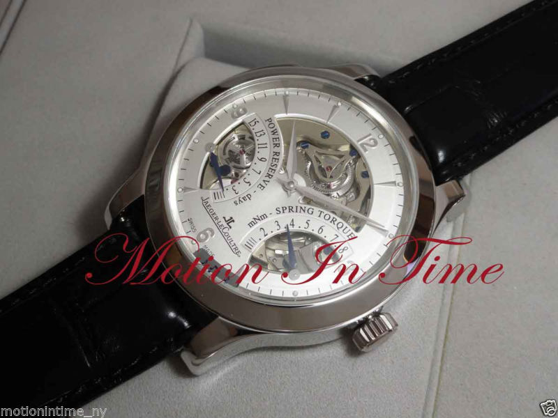 149995.00 Price:149995.00Motion in Time, Inc. Super Exclusive & Extremely Rare EXTREMELY RARE & EXOTIC Jaeger- LeCoultre Grande Complication Master Minute Repeater Skeleton "Antoine LeCoultre" Platinum Limited & Numbered to an Exclusive 200 Pieces Exclusive 15-Day Power Reserve! Own One of the Rarest Horological Creations of ALL TIME! Rare Model --- "A True Work of Art" * * You WILL NOT See Many of These Around! * * EXCLUSIVE MANUFACTURED TIMEPIECES "Literally Speaks for Itself" Unworn - Complete with Box & Papers Reference No. 164.64.20 (Q1646420) BUY IT NOW FOR $149,995 OR MAKE OFFER!! Watch Description Exotic - Rare - And Absolutely Breathtaking! Super Exclusive Master Minute Repeater from Jaeger leCloultre. A powerful & striking watch - will definitely draw attention & makes for a great conversation piece. This watch features: Extraordinarily pure and intense, the crystalline sound of the Master Minute Repeater watch has become a new standard of reference in the world of minute repeaters. STUNNING 15-DAY POWER RESERVE !!! * LIMITED & NUMBERED TO AN EXCLUSIVE 200 PIECES * The Jaeger LeCoultre (JLC) Master Minute Repeater Antoine LeCoultre is a limited edition wristwatch produced in only 200 pieces. With its 44mm diameter solid Platinum case, 15 day power reserve and minutes repetition, this is a powerful and impressive timepiece. The oversized platinum case features a broad bezel, massive repeater slide, thick lugs, sapphire crystals front and back and is 44mm diameter by 15.5mm thick. The entire case is polished in finish. The dial isn’t so much of a dial as an interface with the watch’s timekeeping and complications. Silver in color with applied white gold hour markers and white gold alpha hands, the front of the watch has cutaways for viewing much of the caliber below. There are also scales which show the power reserve remaining in the movement measured in days, as well as the amount of torque in the mainspring. You can see the extremely high quality of this watch in its fit and finish, both of the dial and case as well as the movement. JLC is among the elite Swiss manufactures and this watch illustrates why better than my words can ever convey. Movement is the manual winding Jaeger LeCoultre Caliber 947 with 43 jewels, dual spring barrels to achieve the 15 day power reserve, and of course minutes repetition. The hammers of the minute repeating complication can be seen working in the SPRING TORQUE dial cutout. Strap is black JLC crocodile with 18k white gold JLC deployant clasp. This is a spectacular limited edition minute repeater from one of the most respected Swiss manufactures. Caseback: Sapphire Crystal display back. Gorgeous rear decoration. Two years in development, this is a stunning addition to the Jaeger lineup. It is the first minute-repeater that is water resistant to 50 meters. It displays its functions on the front dial which offer a view into this miniaturized wonder of mechanical engineering. The watch chimes - which are sublime to hear and which were designed in collaboration with the Orchestra Leader Georges Prêtre - produce a very sonorous 55 decibels (at two feet away). An incredible 15-day power reserve. Limited to a very exclusive 200 individually numbered pieces. The minute repeater, which, because of its level of horological complexity, is built far less frequently today than the tourbillon, for example, is the most emotional of all the watch complications. Not only is it a feast for the eyes, but it is also music to the ears and penetrates directly into the realm of human feelings, where it strikes very archaic chords. Making the actual time audible and measurable once again, in the same way as the tower clocks with their striking mechanism, adds a quality to the perception of time beyond a fleeting or even lingering glance at the dial. Crystal gong The crystal-clear sound and exceptional intensity are made possible by a crystal gong testifying to extraordinary research and close cooperation between major personalities in the music world and the movement engineers and technicians of the Manufacture. Côtes soleillées decoration Exclusive decoration especially developed by Jaeger-LeCoultre for sophisticated watch movements. 15-day power reserve To underscore its exceptional character, the watch has a 15-day power reserve and displays the torque released by its the two barrels. Technical characteristics: Movement: Jaeger-LeCoultre Calibre: 947 Hand-winding Pieces number : 413 Vibrations per hour : 21600 Power-reserve : 15 Days Jewels : 43 Barrel : 2 Height : 8.95 mm Functions: Hour - Minute Power-reserve Minute Repeater Barrel torque indicator Hands: Bâton à facette Strap/bracelet: Alligator Leather Buckle: Double Folding Buckle 20.0 mm PLEASE READ OUR ACCEPTED PAYMENT OPTIONS BELOW PRIOR TO BIDDING · 100% GUARANTEED AUTHENTIC WITH A 2 YEAR EXTENDED WARRANTY! PLEASE ALSO CHECK OUR OTHER ITEMS... E-Mail or Call ~ HAPPY BIDDING. David Motion in Time is not affiliated with Jaeger le-Coultre & is not an official Jaeger le-Coultre Dealer. Motion in Time, Inc. is not affiliated with Jaeger le-Coultre, or any other watch company, and is not an official Jaeger le-Coultre Jeweler. Jaeger le-Coultre's warranty no longer attaches. Motion in Time, Inc. is the sole warrantor of these watches. Motion in Time, Inc. is not affiliated with any watch maker. All watches and watch items sold are preowned. We do not ship to Indonesia or Malaysia. CHECK OUR OTHER AUCTIONS FOR MORE GREAT DEALS! (SIGN UP FOR OUR WEEKLY EBAY DEALS) -------------------------------------------------------------------------- Why Buy From Us? BID WITH CONFIDENCE! * Motion in Time is a full-service watch and jewelry store located at 56 West 47 Street, New York, NY 10036 (Between 5th & 6th Avenues). * Be confident when buying from us ~ We are wholesalers of the world’s finest preowned wristwatches and sell brands ranging from Patek Philippe to Movado. * We are members of the International Watch 