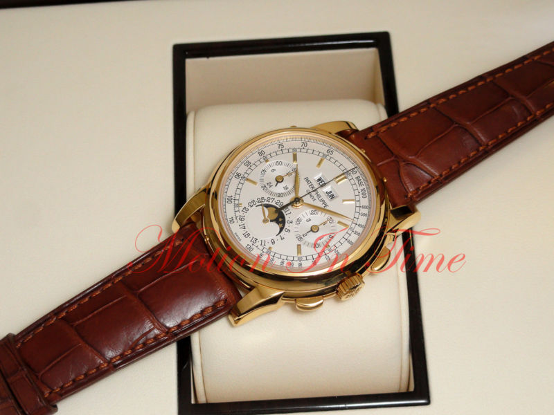 154995.00 Price:154995.00Motion in Time, Inc. Super Exclusive & Extremely Rare Patek Philippe 5970J-001 Yellow Gold Sealed Grand Complication Perpetual Calendar w/ Chronograph & Moonphase * * * You WILL NOT See Many of These Around * * * "Literally Speaks for Itself" Excellent Condition - Complete with Box & Papers, 2nd Caseback, Stylus Pusher, Wallet, Manual Reference No. 5970J-001 BUY IT NOW FOR $154,995 OR MAKE AN OFFER!! Watch Description Exotic - Rare - And Absolutely Breathtaking! Super Exclusive Perpetual Calendar Chronograph from Patek Philippe. A powerful & striking watch - will definitely draw attention & makes for a great conversation piece. This watch features: A TIMEPIECE OF UNDERSTATED ELEGANCE. Please note that the 5970J-001 is now formally discontinued. The Patek Philippe 5970 is a thoroughly modern interpretation of Patek's classical pairing of the perpetual calendar and chronograph complications. When Patek announced plans to discontinue the previous perpetual/chronograph model reference 3970, people asked why. However, the reference 5970 needs no justification: this is a gorgeous watch in every aspect. I can't describe it adequately, but the new case is at once more modern and more vintage in appearance than its predecessor. It's a bolder, more massive case with vintage lines. At any rate, the reference 5970 is the most sought after current production Patek Philippe. Let's start with the 18k Yellow gold case. The dimensions are a robust 40mm diameter by 13.5mm thick, and has three piece construction. The bezel is attractively tall and massive, while the center section bows quite broadly to allow room for the large caliber, and the screw down case back seals everything securely. Lugs are flared, which imparts a vintage style, which is reinforced by the rectangular shaped chronograph pushers. The watch is delivered with a sapphire crystal display back and a second, solid caseback. Domed sapphire crystal in front. Water resistant to 25 meters. While I'm sure some people prefer the solid back, I can't imagine hiding this amazing caliber. The Patek Philippe Caliber 27 70 Q is a sight to behold. Manual winding with 24 jewels, power reserve of approximately 55 hours, beating at 18,000 beats per hour. This truly superlative caliber provides a perpetual calendar and column wheel chronograph construction. Dial is silver with Yellow gold hands and applied hour markers. The hands and hour markers are painted a graphite color for improved legibility. Days and months are displayed beneath 12 o'clock, nine o'clock subdial displays constant seconds and 24 hour indicator, three o'clock subdial displays leap year and 30 minute chronograph counter, and the moonphase and date are displayed above six o'clock. Strap is rich brown, hand-sewn crocodile with an 18k Yellow gold Patek deployant clasp. Watch is Complete with second caseback, setting stylus With box and papers. Brand: Patek Philippe Brand Style: Perpetual Calendar Moon-phase Model Number: 5970J-001 Gender: Men's Condition: Excellent Condition Warranty: Extended Two Year Warranty From Motion in Time Bezel: Yellow Gold Serial Number: Engraved on Movement and Second Case Back Case Material: Yellow Gold Case Diameter: 40mm Crystal Material: Sapphire Crystal Dial Color: Silver Dial Hands: Listed Above Dial Features: Listed Above Bracelet Style: Brown Crocodile Movement: Manual Wind Water Resistant: 30m · · PLEASE READ OUR ACCEPTED PAYMENT OPTIONS BELOW PRIOR TO BIDDING · 100% GUARANTEED AUTHENTIC WITH A 2 YEAR WARRANTY! PLEASE ALSO CHECK OUR OTHER ITEMS... E-Mail or Call ~ HAPPY BIDDING. Motion in Time is not affiliated with Patek Philippe & is not an official Patek Philippe Dealer. Motion in Time, Inc. is not affiliated with Patek Philippe, or any other watch company, and is not an official Patek Philippe Jeweler. Patek Philippe warranty no longer attaches. Motion in Time, Inc. is the sole warrantor of these watches. Motion in Time, Inc. is not affiliated with any watch maker. All watches and watch items sold are preowned. We do not ship to Indonesia or Malaysia. CHECK MY OTHER AUCTIONS FOR MORE GREAT DEALS! (SIGN UP FOR OUR WEEKLY EBAY DEALS) -------------------------------------------------------------------------- Why Buy From Us? BID WITH CONFIDENCE! * Motion in Time is a full-service watch and jewelry store located at 56 West 47 Street, New York, NY 10036 (Between 5th & 6th Avenues). * Be confident when buying from us ~ We are wholesalers of the world’s finest preowned wristwatches and sell brands ranging from Patek Philippe to Movado. * We are members of the International Watch & Jewelry Guild (IWJG) * We give an extended two-year warranty on all watches purchased. * We are located in the Heart of the New York Diamond District in Manhattan. Our main goal is a simple one: "Treat our clients as we would like to be treated ourselves" ---------------------------------------------------------------------------------- Payment Methods: Credit Cards AND PayPal: We accept Visa/MasterCard, American Express All International Buyers must inquire with us prior to bidding. If you have any questions or concerns please feel free to give us a call or eBay message us, we will be more than happy to assist you. (If paying with Credit Card, you must be within the United States and your billing and ship to address must be the same) - Photo ID is required to process payment PayPal: PayPal users must be Verified and Confirmed. Regarding PayPal Payments: We will only ship to the PayPal confirmed address. It is a requirement of PayPal in order to meet their protection policy. By adhering to their safety regulations, we are able to conduct safer business and as a result sell our items at lower prices. All items shipped within New York State will incur an 8.875% sales tax. ---------------------------------------------------------------------------------- Import duties, taxes, and charges are NOT INCLUDED in the item price or shipping charges. These ch