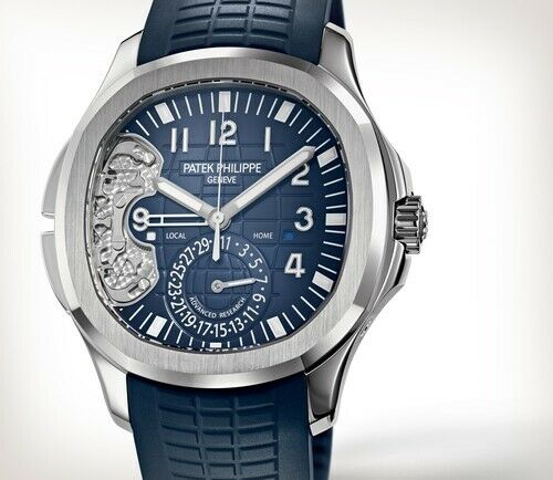 284999.00 Price:284999.00 Patek Philippe Aquanaut Travel Time 5650G-001 Advanced Research Mens Watch. start from scrach DESCRIPTION Patek Philippe Aquanaut Travel Time 5650G-001 Advanced Research Mens Watch. 40mm 18K White Gold case. Stainless Steel Stationary bezel. Black dial with Luminous gold hands and index hour markers. Minute markers on the outer dial. Date display at the 6 o'clock position. Rubber Strap with Butterfly Clasp. Will fit up to an 8-inch wrist. Sapphire Crystal, clear case back. Calibre 324 S C FUS AR Automatic self-winding movement with a 54-hour power reserve. Original Box & Papers included. This watch is backed by our one year warranty. BRAND Patek Philippe MODEL Aquanaut REFERENCE 5650G-001 GENDER Men AGE Modern (2000-Present) YEAR 2019 CONDITION New AFTERMARKET PARTS None CASE MATERIAL 18K White Gold CASE SIZE (MM) 40 WATCH STYLE Luxury: Dress Styles BEZEL FUNCTION Stationary BEZEL MATERIAL Stainless Steel DIAL COLOR Black BAND MATERIAL Rubber WRIST SIZE (IN) 8 CLASP STYLE Butterfly Clasp CLASP MATERIAL White Gold MOVEMENT Automatic BOX Yes PAPERS Yes CRYSTAL Sapphire SKU PP05141902GT MOVEMENT Automatic ADDITIONAL FEATURES Date,Hours,Luminous Hands & Markers,Minutes,Seconds,Transparent Case Back AS WITH ALL OF OUR WATCHES, AUTHENTICITY IS GUARANTEED!