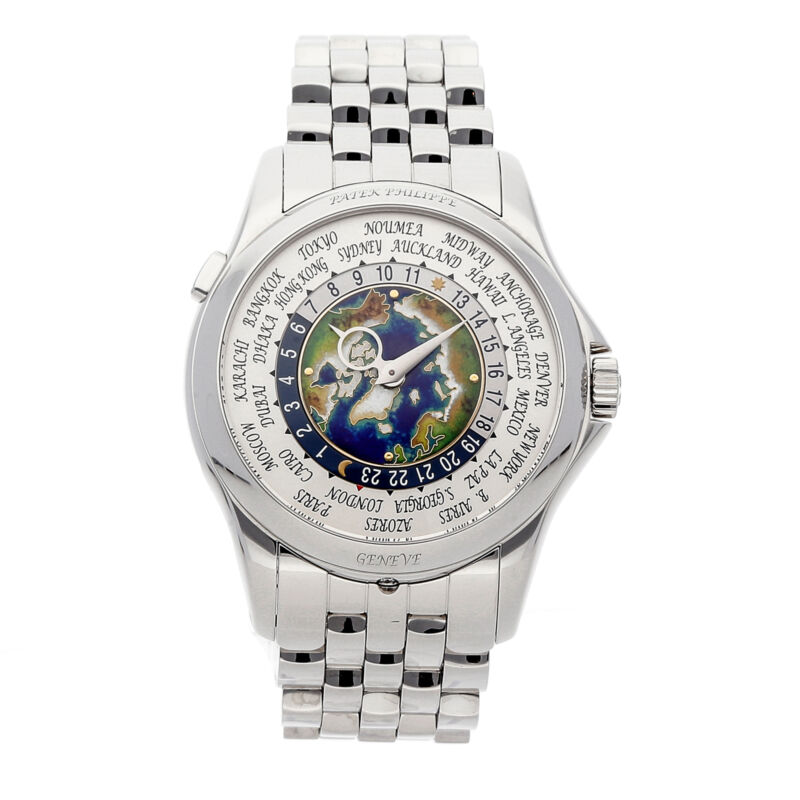 130551.15 Price:130551.15Pre-Owned Patek Philippe Complications World Time Platinum Auto 39.5mm Mens 5131/1P-001 --> About the Watch Pre-Owned Patek Philippe Complications World Time (51311P001) self-winding automatic watch, features a 39.5mm platinum case surrounding a cloisonne enamel "North Pole" dial with on a platinum bracelet with folding buckle. Functions include hours, minutes, world time and am/pm indicator. This watch comes complete with box and papers. We back this watch with a 15-month warranty! About the Brand Founded in 1884 by Leon Breitling, the company was conceptualized as a manufacturer of counters and chronographs for industrial and scientific purposes. In less than a decade, it became apparent that Breitling had become a “hit” because of its innovation, design, and functionality. Some of the company’s most notable clients include the American armed forces and major international airlines. --> Watch Details Reference Number5131/1P-001MovementMechanical (Automatic)Case Size39.5mmCase MaterialPlatinumCase ColorSilverFace ColorMulti-Color/Misc., SilverHour MarkersNoneDisplayAnalogWatch ShapeRoundCasebackExhibitionBand Color SilverBand MaterialPlatinumBuckle TypeFolding BuckleGenderMen'sFeaturesGMT/World Time, Day/Night IndicatorBox/PapersBox and PapersWarranty15-Month Govberg Jewelers WarrantyYear of Manufacture2010-2019Country/Region of ManufactureSwitzerlandStyleDressWater Resistance Rating30 m (3 ATM) About Watchbox WatchBox is the global destination for luxury pre-owned timepieces, offering an expertly curated inventory of luxury pre-owned watches for sale, personalized client services, educational opportunities and amazing video content. Shipping Information WatchBox™ can ship to most addresses in the United States and a large number of International locations (including P.O. Boxes). As per PayPal requirements, we will only ship to a confirmed PayPal shipping address, as approved by PayPal. Additional costs, such as customs, import duties, VAT, taxes and charges are the buyer's responsibility. Those charges are NOT included in the price of the item or shipping charges. Returns We offer a 30-day return window on the majority of items. Exceptions apply, see details below. All items must be returned in their original condition with the WatchBox plastic tag attached. A 10% restocking fee may be applied at the seller’s discretion, see details below. Warranty Information WatchBox offers a fifteen-month (15) limited service warranty on every product sold, unless otherwise stated. More Information Domestic Orders We offer free & fully insured FedEx 2nd-Day shipping. If you require immediate shipping, please contact us, prior to purchasing. We charge a flat rate of 30.00 USD for FedEx Standard Overnight. For security, all orders are shipped with an adult signature required. We do ship to APOs or FPOs. For P.O. Boxes, we typically do not ship to P.O. Boxes. Please contact us before bidding if you fall into these categories so we may best accommodate you. --> Due to the United States' Supreme Court ruling in South Dakota v. Wayfair, Inc., 585 U.S. ___ (2018), all sales may be subject to Sales Tax based on your shipping address. Please contact us directly if you have questions regarding the tax rate in your jurisdiction. International Orders We offer fully insured shipping to a large selection of international locations. Please contact us before bidding/buying/ordering to make sure we ship to your country. See shipping exclusions for more details. We charge a flat rate of 75.00 USD to ship FedEx International Priority. Additional costs, such as customs, import duties, VAT, taxes and charges are NOT included in the item price or the shipping costs. These charges are the buyer's responsibility. If a package is returned due to a delivery refusal, buyer will be subject to a 10% restocking fee. Please be aware that we must declare the amount that you paid on the international invoice included with the shipment. We cannot declare the watch as a gift/used/or at a lower value. Warranty WatchBox offers a limited warranty on every product sold, unless otherwise stated. Pre-owned timepieces are warranted for a minimum of fifteen (15) months from the date of purchase. The Date of Purchase is defined as the date on the bill-of-sale, sales receipt, or any dated document designated by WatchBox as proof-of-purchase. Conditions apply to the WatchBox fifteen-month (15) limited service warranty. The repair warranty does not cover parts that WatchBox did not service, basic services on quartz watches, water damage, shock damage, all abuse, or any handling that exceeds the limits of a timepiece’s intended use. Consequential and incidental damages are not recoverable under this warranty. Third-party performance of service, opening of a product, or addition of parts other than strap or bracelet components will void the WatchBox fifteen-month (15) limited warranty on pre-owned watches. WatchBox will, at its sole discretion, determine the applicability of its warranty to each timepiece for which a warranty claim is lodged. The WatchBox fifteen-month (15) limited warranty is non-transferrable. Returns Items purchased from WatchBox under $20,000.00 USD may be returned or exchanged within 30-days of purchase. Items $20,000.00 USD or more may be returned or exchanged within 14-days of purchase. All items must be in their original, unused condition for a full refund of the purchase price or store credit for an exchange. Original shipping charges will not be refunded. If within the 30-day return window, the WatchBox plastic tag is removed or watch shows signs of wear, the buyer will be subject to a 10% restocking fee. Once the watch is worn or sized we cannot accept a return of the watch. Items designated as no returns are final sale and non-returnable. Payment Type PayPal Bank Wire Details Will only ship to your confirmed PayPal Address Merchandise Ships Within 1 business day after receipt of cle
