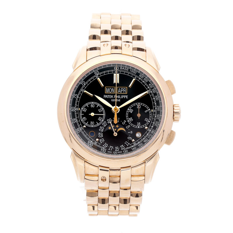 150433.08 Price:150433.08Pre-Owned Patek Philippe Grand Complications Perpetual Calendar Chronograph 5270/1R-001 --> About the Watch Pre-Owned Patek Philippe Grand Complications Perpetual Calendar Chronograph (52701R001) manual-wind watch, features a 41mm 18k rose gold case surrounding a black dial on an 18k rose gold Goutte bracelet with folding buckle. Functions include hours, minutes, small-seconds, day, date, month, leap year indicator, day/night indicator, chronograph, tachymeter scale, moon phase and perpetual calendar. This watch comes complete with box and papers. Majority of time remaining on the factory warranty! About the Brand Founded in 1884 by Leon Breitling, the company was conceptualized as a manufacturer of counters and chronographs for industrial and scientific purposes. In less than a decade, it became apparent that Breitling had become a “hit” because of its innovation, design, and functionality. Some of the company’s most notable clients include the American armed forces and major international airlines. --> Watch Details Reference Number5270/1R-001MovementMechanical (Hand-winding)Case Size41mmCase MaterialRose GoldCase ColorRose GoldFace ColorBlackHour MarkersIndexDisplayAnalogWatch ShapeRoundCasebackExhibitionBand Color Rose GoldBand MaterialRose GoldBuckle TypeFolding BuckleGenderMen'sFeaturesetual Calendar, TachymeterBox/PapersBox and PapersStyleDressWarrantyMajority of Time Remaining on Factory WarrantyYear of Manufacture2010-2019Country/Region of ManufactureSwitzerlandWater Resistance Rating30 m (3 ATM) About Watchbox WatchBox is the global destination for luxury pre-owned timepieces, offering an expertly curated inventory of luxury pre-owned watches for sale, personalized client services, educational opportunities and amazing video content. Shipping Information WatchBox™ can ship to most addresses in the United States and a large number of International locations (including P.O. Boxes). As per PayPal requirements, we will only ship to a confirmed PayPal shipping address, as approved by PayPal. Additional costs, such as customs, import duties, VAT, taxes and charges are the buyer's responsibility. Those charges are NOT included in the price of the item or shipping charges. Returns We offer a 30-day return window on the majority of items. Exceptions apply, see details below. All items must be returned in their original condition with the WatchBox plastic tag attached. A 10% restocking fee may be applied at the seller’s discretion, see details below. Warranty Information WatchBox offers a fifteen-month (15) limited service warranty on every product sold, unless otherwise stated. More Information Domestic Orders We offer free & fully insured FedEx 2nd-Day shipping. If you require immediate shipping, please contact us, prior to purchasing. We charge a flat rate of 30.00 USD for FedEx Standard Overnight. For security, all orders are shipped with an adult signature required. We do ship to APOs or FPOs. For P.O. Boxes, we typically do not ship to P.O. Boxes. Please contact us before bidding if you fall into these categories so we may best accommodate you. --> Due to the United States' Supreme Court ruling in South Dakota v. Wayfair, Inc., 585 U.S. ___ (2018), all sales may be subject to Sales Tax based on your shipping address. Please contact us directly if you have questions regarding the tax rate in your jurisdiction. International Orders We offer fully insured shipping to a large selection of international locations. Please contact us before bidding/buying/ordering to make sure we ship to your country. See shipping exclusions for more details. We charge a flat rate of 75.00 USD to ship FedEx International Priority. Additional costs, such as customs, import duties, VAT, taxes and charges are NOT included in the item price or the shipping costs. These charges are the buyer's responsibility. If a package is returned due to a delivery refusal, buyer will be subject to a 10% restocking fee. Please be aware that we must declare the amount that you paid on the international invoice included with the shipment. We cannot declare the watch as a gift/used/or at a lower value. Warranty WatchBox offers a limited warranty on every product sold, unless otherwise stated. Pre-owned timepieces are warranted for a minimum of fifteen (15) months from the date of purchase. The Date of Purchase is defined as the date on the bill-of-sale, sales receipt, or any dated document designated by WatchBox as proof-of-purchase. Conditions apply to the WatchBox fifteen-month (15) limited service warranty. The repair warranty does not cover parts that WatchBox did not service, basic services on quartz watches, water damage, shock damage, all abuse, or any handling that exceeds the limits of a timepiece’s intended use. Consequential and incidental damages are not recoverable under this warranty. Third-party performance of service, opening of a product, or addition of parts other than strap or bracelet components will void the WatchBox fifteen-month (15) limited warranty on pre-owned watches. WatchBox will, at its sole discretion, determine the applicability of its warranty to each timepiece for which a warranty claim is lodged. The WatchBox fifteen-month (15) limited warranty is non-transferrable. Returns Items purchased from WatchBox under $20,000.00 USD may be returned or exchanged within 30-days of purchase. Items $20,000.00 USD or more may be returned or exchanged within 14-days of purchase. All items must be in their original, unused condition for a full refund of the purchase price or store credit for an exchange. Original shipping charges will not be refunded. If within the 30-day return window, the WatchBox plastic tag is removed or watch shows signs of wear, the buyer will be subject to a 10% restocking fee. Once the watch is worn or sized we cannot accept a return of the watch. Items designated as no returns are final sale and non-returnable. Payment Type PayPal Bank Wire Detai