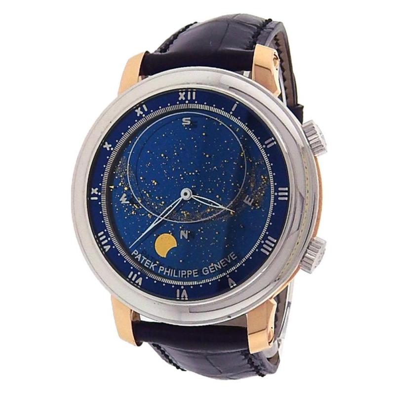 199000.00 Price:199000.00Brand Patek Philippe Model Sky Chart Grand Complication Model No 5102PR Condition Pre-Owned Case Material Platinum & 18k Rose Gold Bracelet Material Black Leather Dial Blue Movement Automatic Movement Details Self-Winding Box/ Papers Winding Box & Archive Papers Case Size 43mm Retail Price: $324,000.00 Pre-Owned Watch. Own this beautiful Patek Philippe Sky Chart Grand Complication and enjoy quality and precision from the finest watchmakers in history. Watch offers you a blue dial with Roman numerals. Watch has a black leather strap with Platinum and 18k Rose Gold case. This timepiece shows regular signs of usage and has a nice clean dial. Watch come with winding box and archive papers. Wear it in great health. This watch is backed with Midtown Watch One Year Limited Warranty. Watch pictured is the actual watch you will purchase. Watch is in stock and ready to ship. We welcome everyone in trading or selling their luxury timepiece towards an credit or even payment. Please send us a message letting us know what you are interested on selling/trading your timepiece. Located in the heart of Manhattan's world famous Diamond District, Midtown Watch has been providing courteous and knowledgeable service to watch enthusiasts since 2001. Our reputation of integrity and unsurpassed customer service has been earned by the meticulous attention we pay to every inquiry. Each transaction is handled under the supervision of one of the companies owners, ensuring a positive customer experience. Our mission at Midtown Watch is to create long lasting relationships with our clients, providing them with some of the finest watches in the world. Our hours of operation are Monday - Fridays 10am - 5:30 pm Eastern Standard Time. Contact us at: Tel: 212 398 7311 Thank you. Get Images that Make Supersized Seem Small.Auctiva's Listing Templates improve your auctions in minutes. Attention Sellers - Get Templates Image Hosting, Scheduling at Auctiva.com.