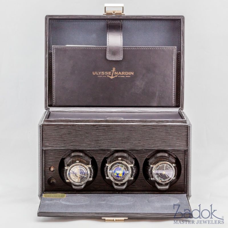 299000.00 Price:299000.00Ulysse Nardin Platinum Trilogy Men’s Astrological Watches Limited Edition 26/100Previously owned. Mint condition. Never worn. Comes in display box with all papers. Payment is due within 48 hours or the item will be re-listed. Full Retail Price: $295,000 Warranty: 12-month Zadok Jewelers warranty Description:-- Case material: Platinum, Strap material: Leather, Crystal: Sapphire-- Presentation box with three individual built-in battery watch winders and watch repair kit-- Astrolabium Galileo Galilei: 41mm, Self-winding, 30m water resistant. Indicates position of the sun, moon, and stars as seen from earth. Also indicates sunrise and sunset, dawn and dusk, moonphases, moonrise and moonset, eclipses of the sun and moon, and the month and day of the week.-- Planetarium Copernicus: 41mm, Self-winding, 30m water resistant. Indicates astronomical positions of the planets in relation to the Sun and Earth. Perpetual calendar. Zodiac signs.-- Tellurium Johannes Kepler: 43mm, self-winding, 30m water resistant. Earth rotates in its true geographical shape as seen from the North Pole. Flexible spring bends from the Tropic of Cancer to the Tropic of Capricorn to reveal what part of the Earth is lit by the Sun. Moon rotates around the sun.-- Each watch has a strap buckle clasp-- Limited Edition 26/100 This timepiece is being sold by Zadok Jewelers in Houston, Texas, an authorized retailer of Ulysse Nardin. If you are in the Houston area, you are welcome to drop by our store anytime to see this timepiece. Ask for Abby or AJ. Please don’t hesitate to contact us with any questions. Zadok Jewelers1749 Post Oak Blvd.Houston, TX 77056Store, direct (Abby or AJ): +1 713-434-6750 (M-F 10 a.m. - 6 p.m. CST)Store, main: +1 713-960-8950Store, toll-free: 800-333-3767 Shipping: DomesticShipping within the continental U.S. is complimentary UPS expedited/fully insured/signature required.*Please note: Texas state law requires us to charge a sales tax of 8.25% on any item that will be shipped to a Texas address. InternationalInternational shipping charges vary based on destination. This amount is automatically calculated by eBay. International shipping will be FedEx International Priority/fully insured/signature required. Countries in which we’re fortunate to have very satisfied customers: Australia, New Zealand, Russia, China (including Hong Kong), Japan, Malaysia, Thailand, Singapore, Saudi Arabia, Kuwait, Qatar, U.K., France, Germany, Switzerland, Canada & Mexico.WE NO LONGER SHIP TO MEXICO OR ARGENTINA. OUR APOLOGIES. *Please note: List price does not include any VAT’s, customs or duties taxes, or other fees the buyer may incur after we ship; all of these are the responsibility of the recipient upon delivery. About our photographs:The item pictured is always the actual item for sale. Our photographs are taken in-house at Zadok Jewelers by Zadok staff. The only detail altered in any photo is to hide the serial number of the item. We are happy to provide additional photos if requested. About Zadok Jewelers:Zadok Jewelers is an independent luxury jewelry store and an authorized retailer of Ulysse Nardin. “Master jewelers for seven generations.” “Our reputation is our trademark.” Thanks to our customers, Zadok Jewelers is one of the largest independent luxury jewelry stores in the United States. We have been in the same Uptown Houston location since 1976. For our Better Business Bureau information, including our ‘A+’ rating, please Google “Zadok Jewelers Better Business Bureau.” eBay does not allow us to post links to outside websites. To read more about us, please Google “Zadok Jewelers.” Thank you. Zadok Jewelers’ Return Policy:We guarantee customer satisfaction. If for any reason you are not happy with your purchase, we will issue a refund.In the event of a return, please contact us for a return authorization number and details about returning the merchandise within five days. Once we have issued your RA#, simply ship the item back within two business days – fully insured, for the customer’s protection – in the same condition and with all the boxes/paperwork/accessories with which it was originally shipped. Failure to comply with our returns guidelines can result in denial of return shipment or fees to replace lost boxes/paperwork/accessories. For more information about timepiece servicing at Zadok Jewelers, please Google “Zadok Jewelers.” Click on our website. At the top of the home page, hover over “Service & Repair” and then click on “Watch Repair & Maintenance.”